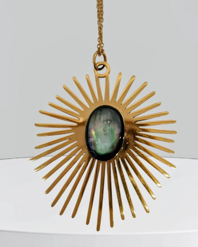 Le pendentif Soleil avec une nacre noire incarne l'élégance solaire dans une interprétation contemporaine et raffinée.